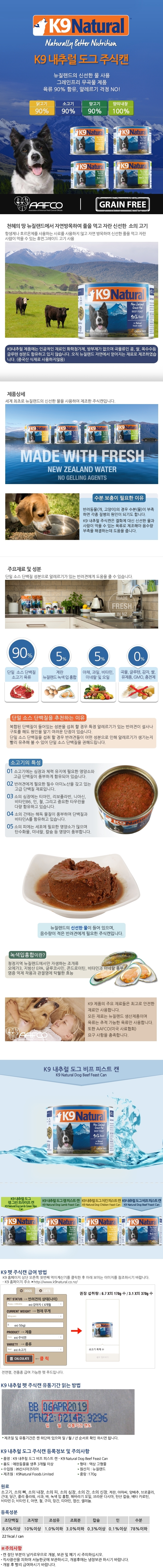 K9 내추럴 도그 비프 피스트 캔 170g X 24