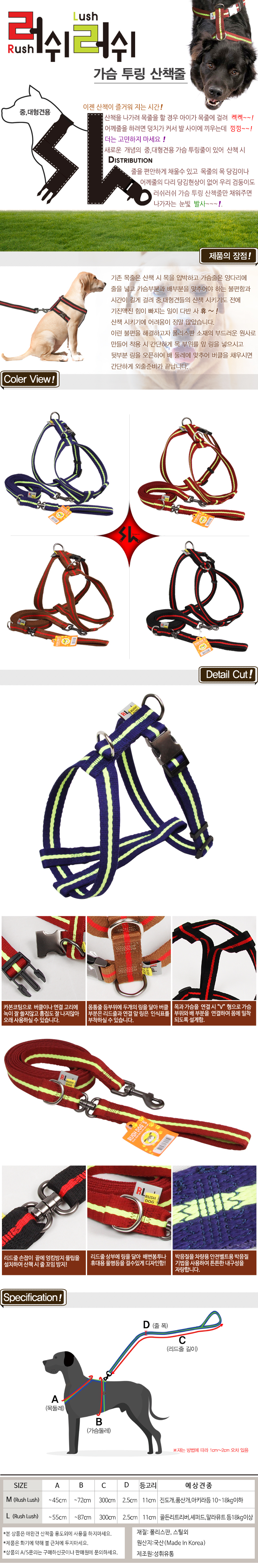 러쉬러쉬 중대형견 가슴줄세트 (색상임의배송)