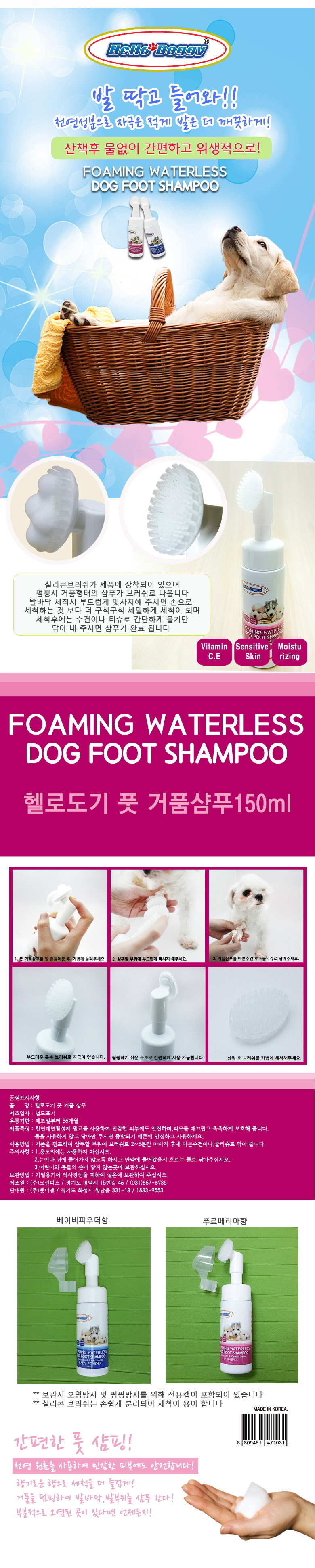 헬로도기 풋 거품샴푸 워터리스 150ml 푸르메리아향