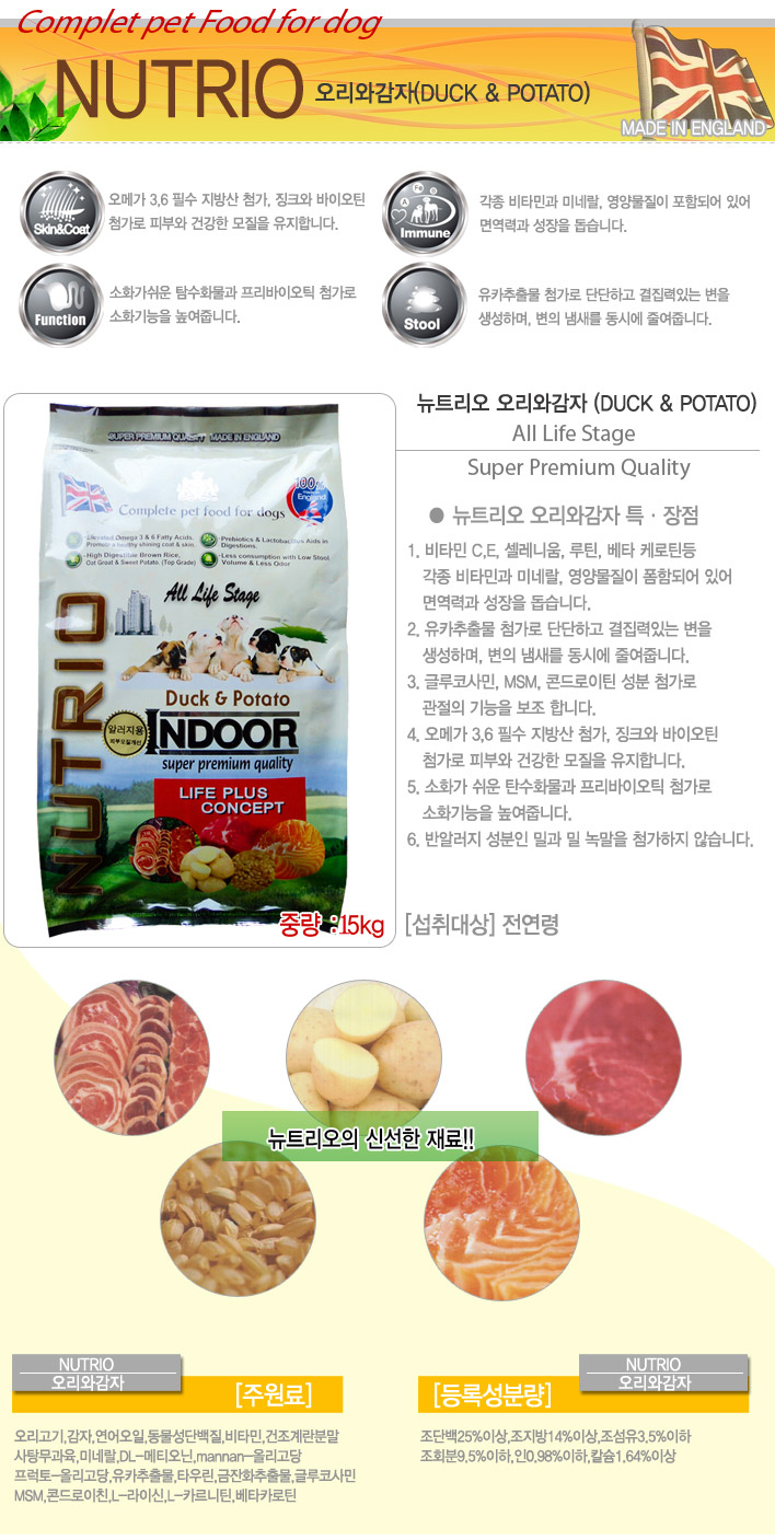 뉴트리오 오리와감자 15kg (전연령-피부/모질개선)