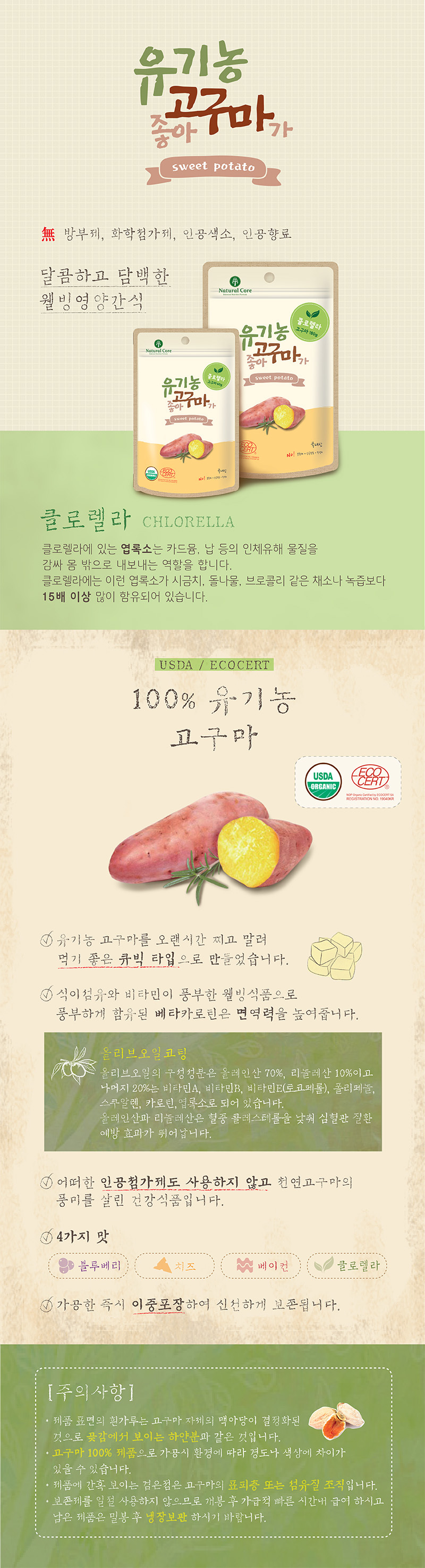 네츄럴코어 유기농 고구마가 좋아 클로렐라 60g