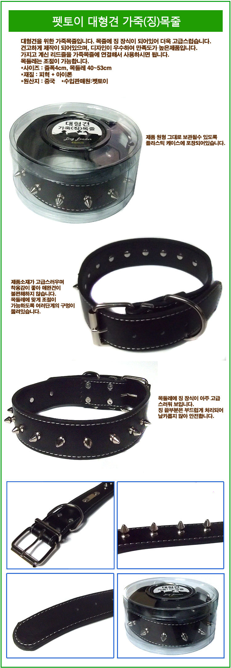 대형견 가죽(징)목줄 40mm-블랙