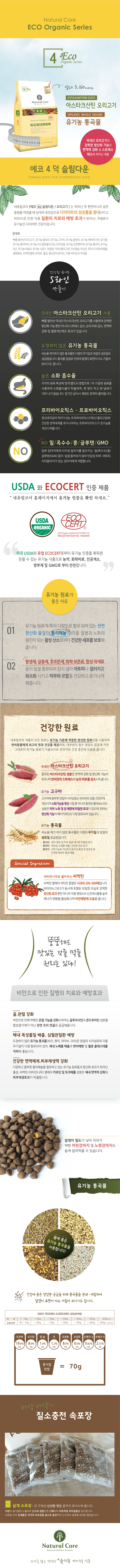 네츄럴코어 유기농에코4 S/D 오리고기&통곡물 전연령견 슬림다운 6kg
