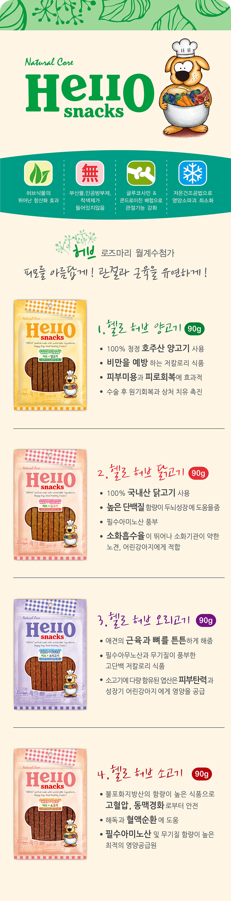 네츄럴코어 헬로스낵 허브+오리고기 90g